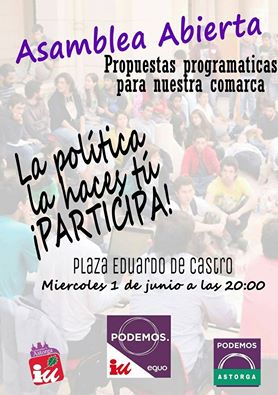 La voz de Astorga es un espacio plural creado a iniciativa de la asamblea de IU-Astorga. Es el boletín informativo de IU-Astorga, pero no es el clásico periódico de partido, sino un espacio más para la participación, abierto a todas aquellas personas vinculadas al municipio y a las comarcas que compartan nuestro proyecto político-social. En consecuencia, no queremos sustituir el papel de la prensa local, sino tan solo ser otra voz más, libre y comprometida. La voz de Astorga es también parte del #compromisoXastorga